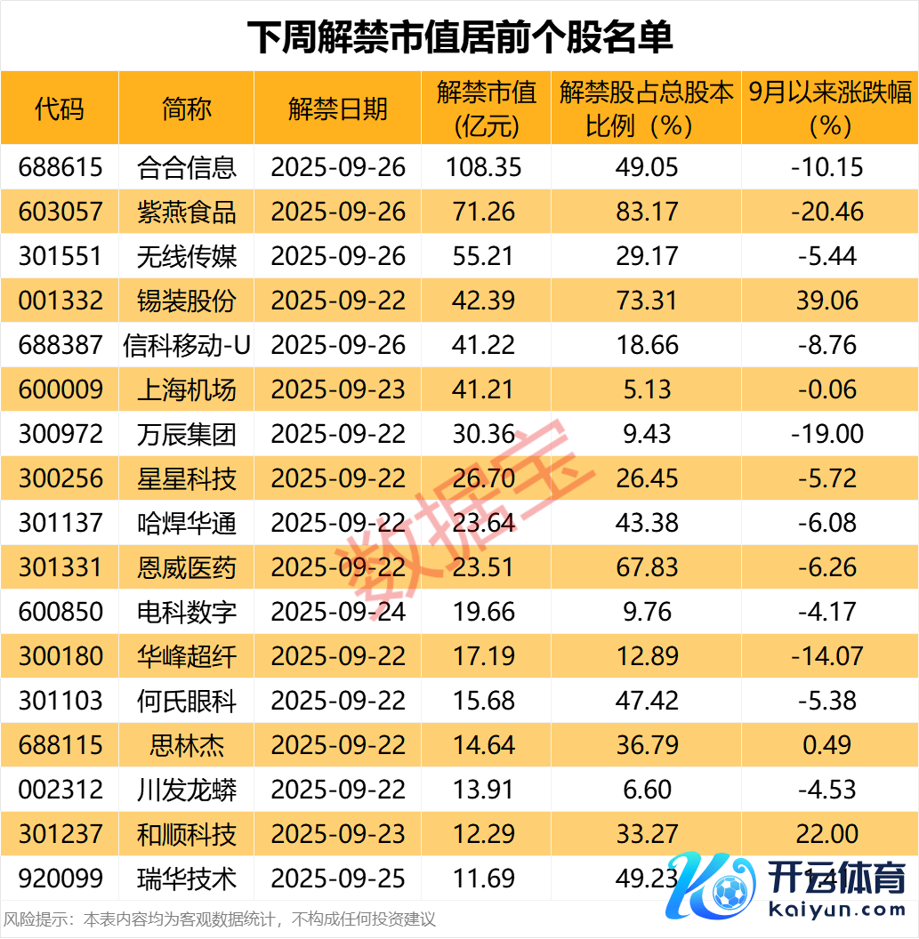 下周解禁市值619.22亿元开云体育(中国)官方网站。