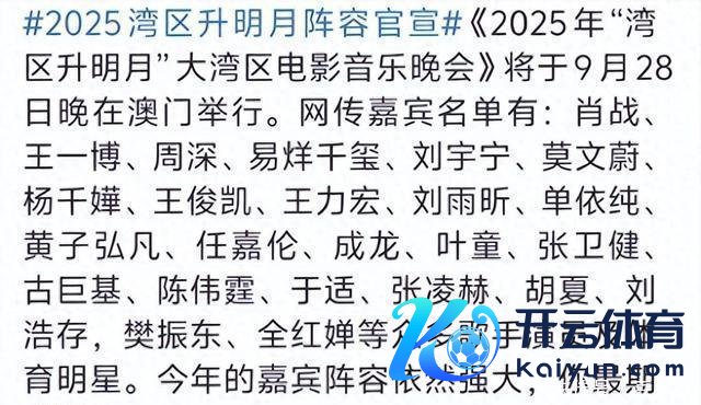 2025年“湾区升明月”晚会将于9月28日在澳门举办,和往年相似,此次依然汇聚了两岸三地繁多电影东谈主、明星皆聚一堂。光是参演明星就接近百东谈主。而此次演都有哪些让东谈主期待的看点呢?