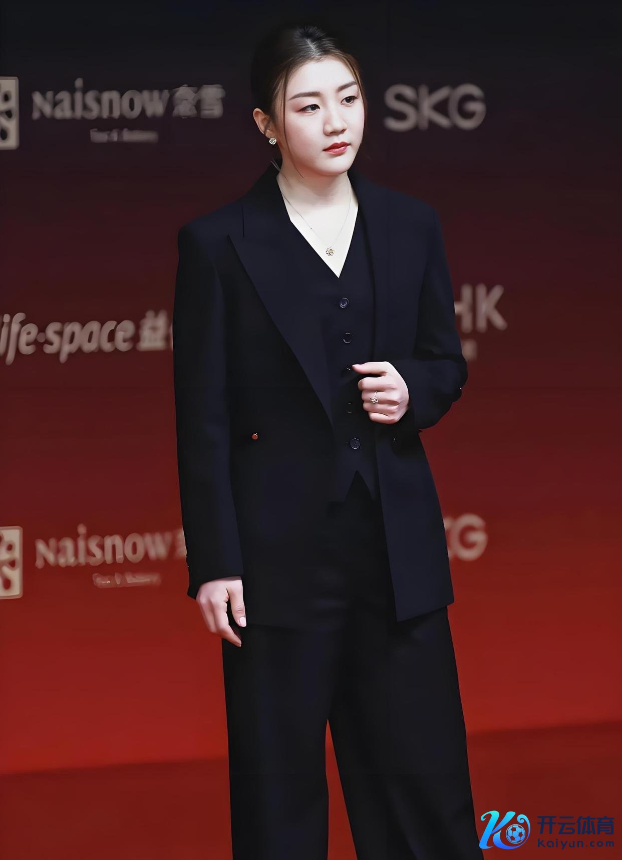 红毯上从来齐是女明星的战场,深V、露背、拖地长裙,恨不得把“我很贵”三个字镶在水钻上。 鸿沟那天晚上,陈梦穿戴落寞1700块的玄色西装走上来了,全场顷刻间平静。 她头发松松盘了个髻,V领马甲开到锁骨,裤腿利落得像刚开完董事会顺道来拿个奖。 网友径直炸锅:“这哪是来走红毯? 分明是女总裁来收购公司! ”
