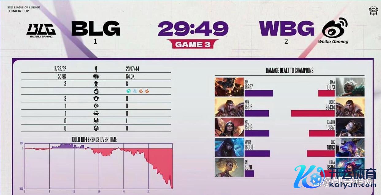 第三局盲选花样成为BLG的恶梦,WBG的Erha妮蔻化身枢纽先生,24分钟中路变小兵绕后开团,霎时控住BLG三东说念主,配合Xiaohu发条的爆炸AOE打出1换4。而BLG的恢复显得惨白无力:Xun杰斯前期拿到一血后相接上面送塔,Yxl妖姬在枢纽团战中被秒杀,Viper的厄斐琉斯尽管奋发输出,却难敌WBG多核火力。最终,Jiejie的杰斯三杀末端,BLG的基地在29分49秒爆炸。