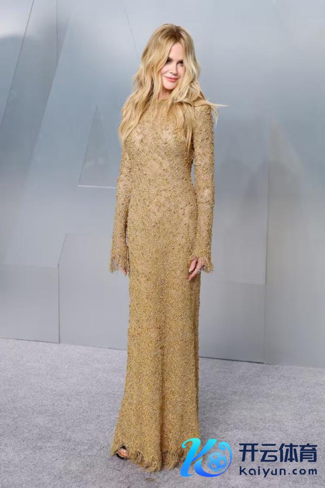 澳大利亚女演员妮可 · 基德曼身着金色晚礼裙,披垂着一头瞩方针金发,爽气不迫地走上了红毯,立地投入我方的拍照区域。