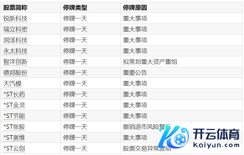 A股停牌教导:13股当天停牌A股停牌教导:13股当天停牌